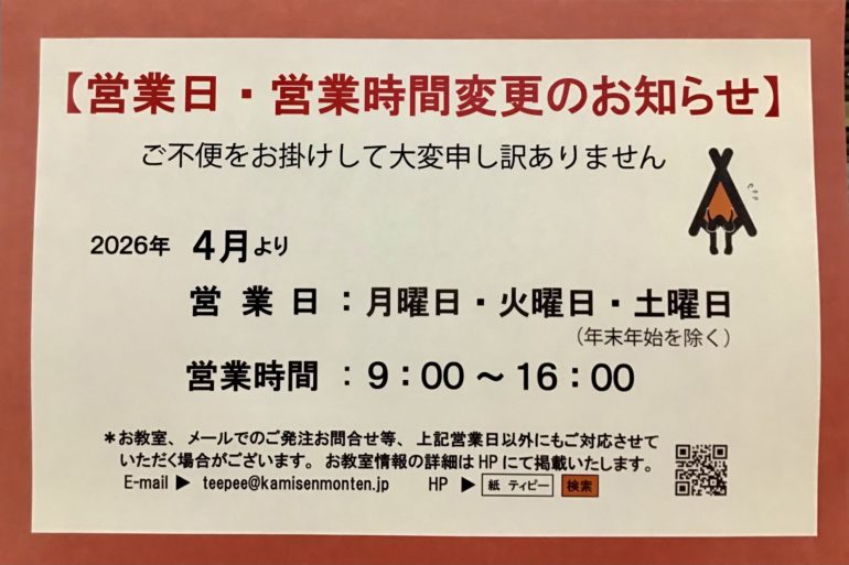 4月より【営業日・営業時間】を変更させていただきます。
